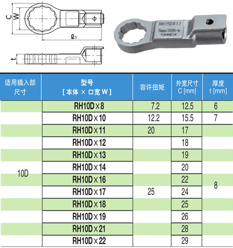 首页 > 工具 工具耗材 焊接 > 扭力工具 > > 东日梅花扳手头,11mm,RH10D*11