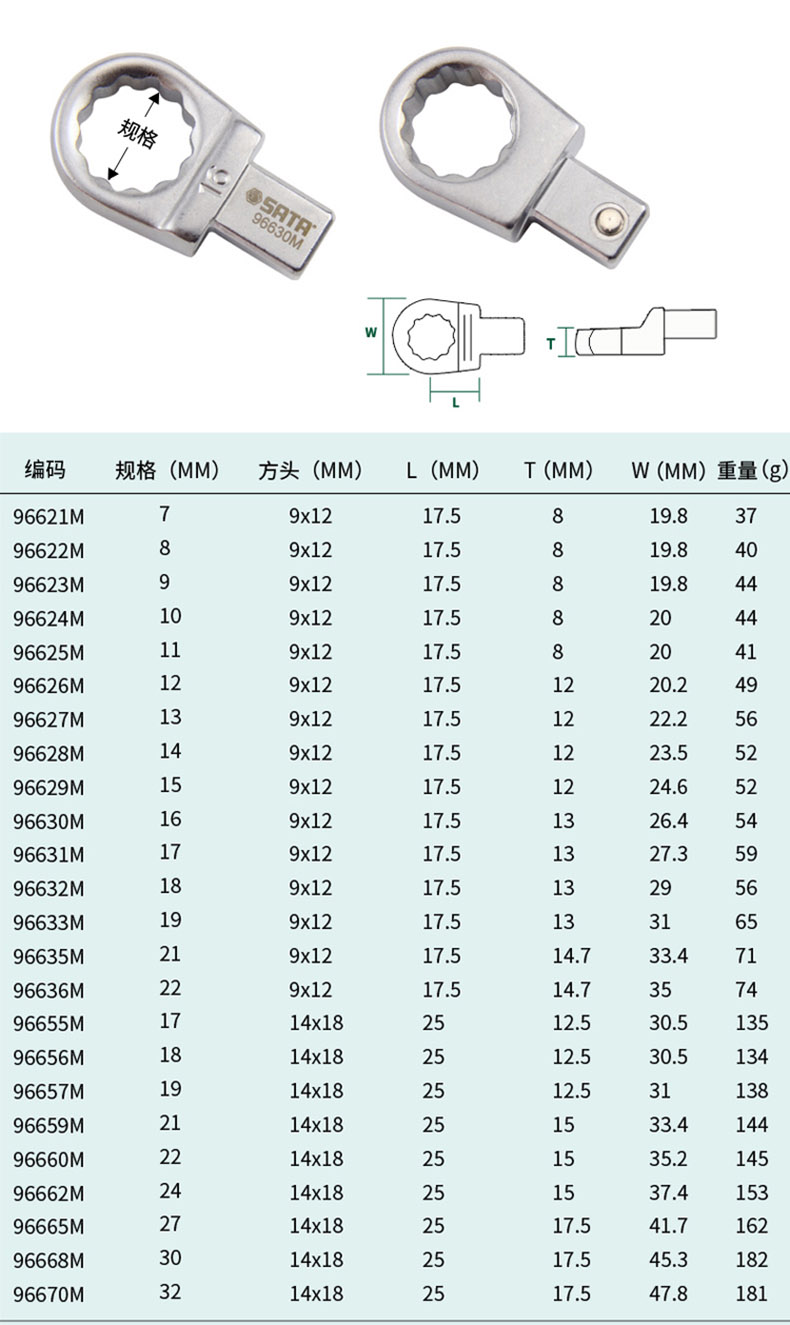 世达扭力扳手梅花头,9×12系列 17MM,96631M