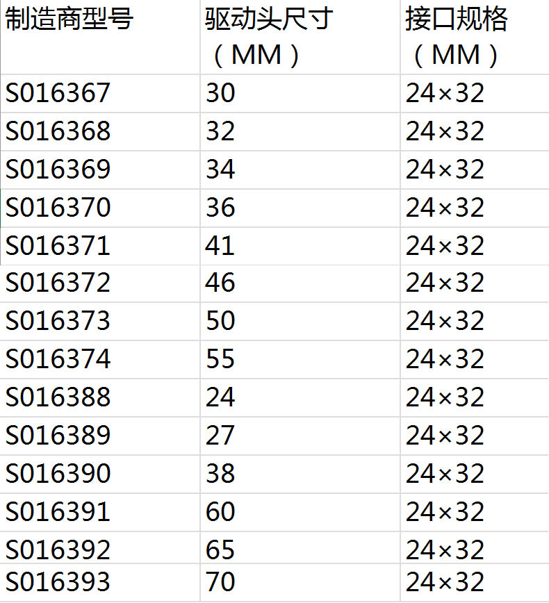 连接规格 24×32mm