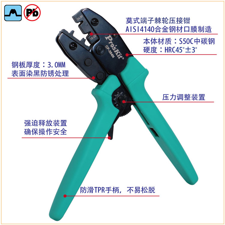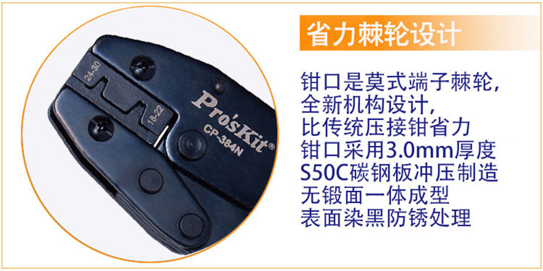 宝工 Pro'skit 莫士端子棘轮压钳,CP-384N