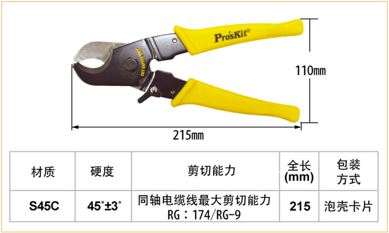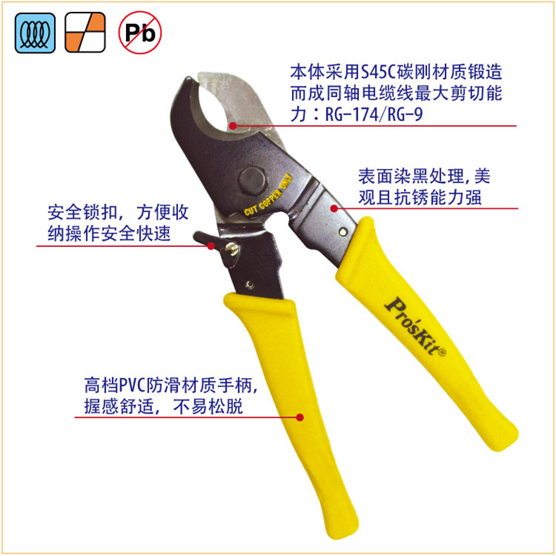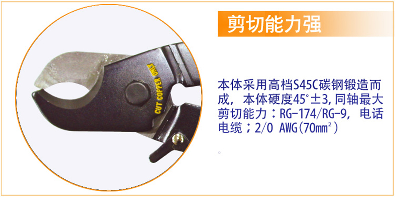 同轴电缆线MAX剪切能力:RG-174/RG-9,电话线:2/0 AWG(70m㎡)
