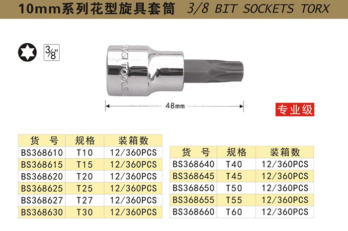 | 类型 | 10mm系列花形旋具套筒 |