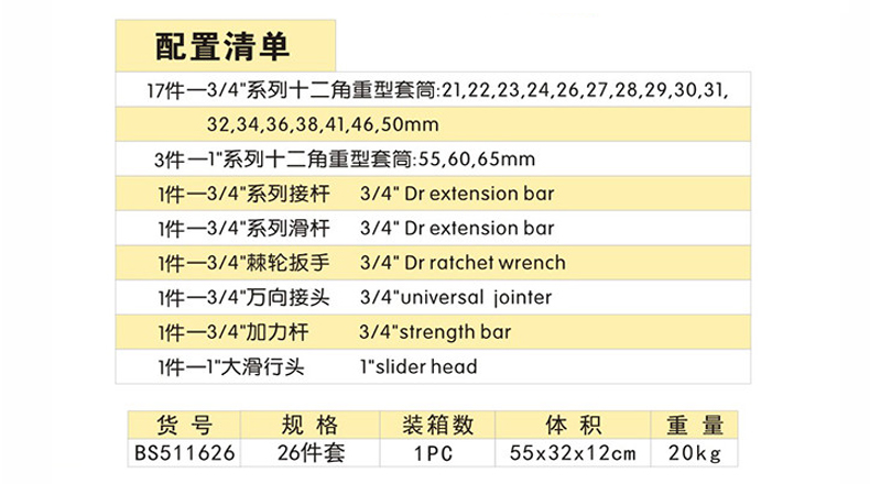 波斯重型套筒组套,3/4"系列 26件套,BS511626