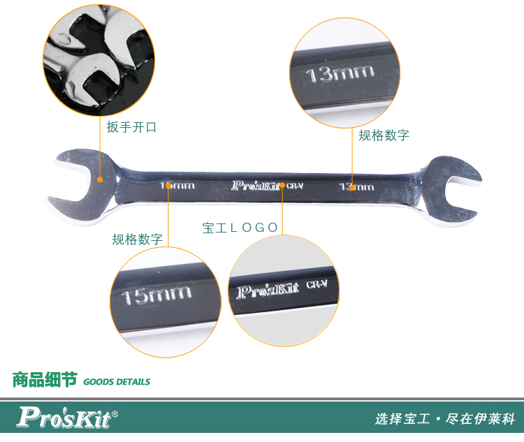 首页 > 工具 工具耗材 焊接 > 扳手/手动套筒 > > 宝工 Pro'skit 铬钒钢镜抛公制双开口扳手,19x21mm,9HW-7119B