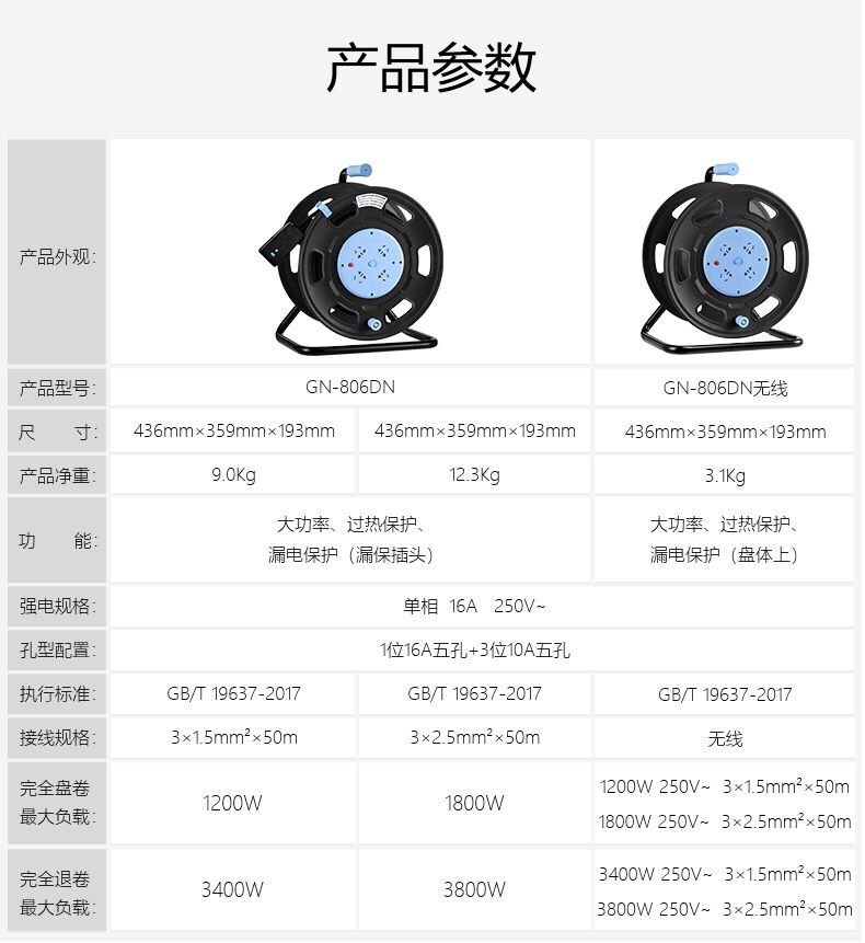 品牌型号 公牛GN-806D (2*1.5平方100米)