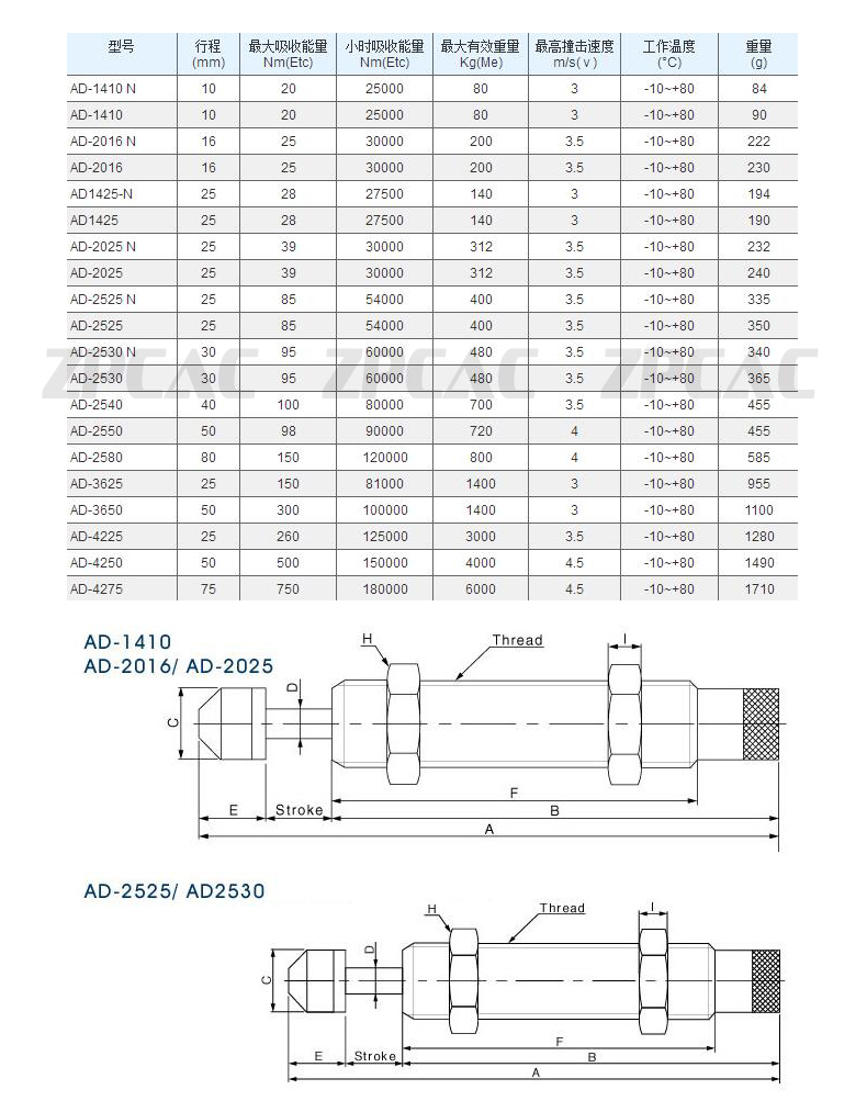 ZPCAC液压油压缓冲器压力可调整式气缸减震器,AD2540