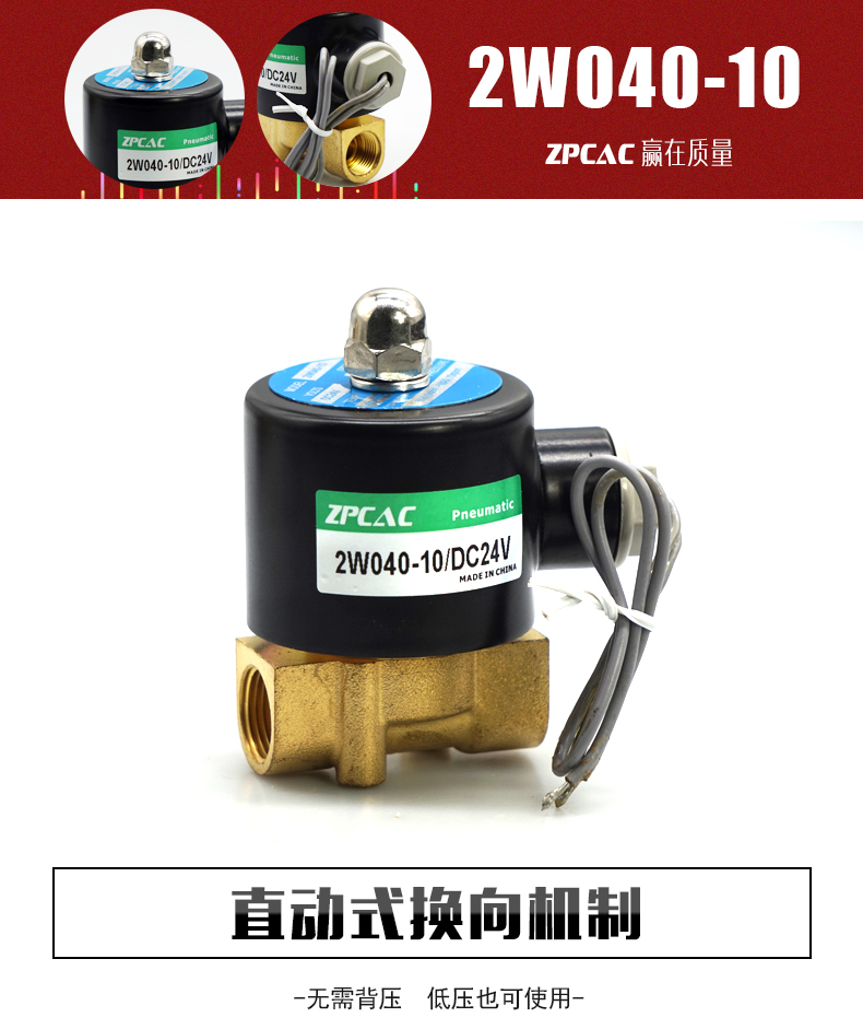 ZPCAC气动电磁阀水阀电动阀门常闭电磁水阀,2W040-10交流电压AC220V