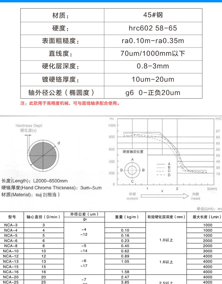 首页 > 轴承 皮带 机械 > 直线导轨/滑块 > > 霍尔曼硬轴直线镀铬光轴导轨活塞杆,10MM(1米)