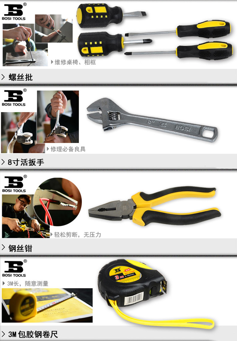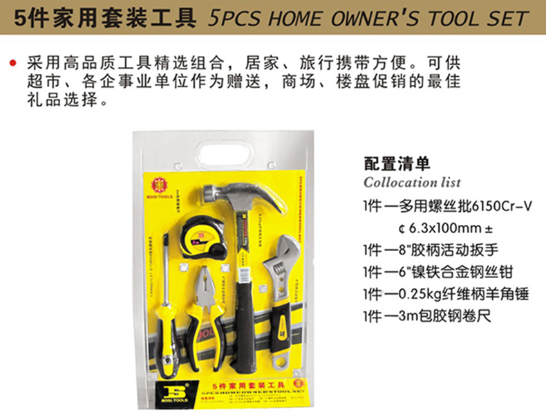 | 钳类工具 | ·1件镍铁合金钢丝钳6" |