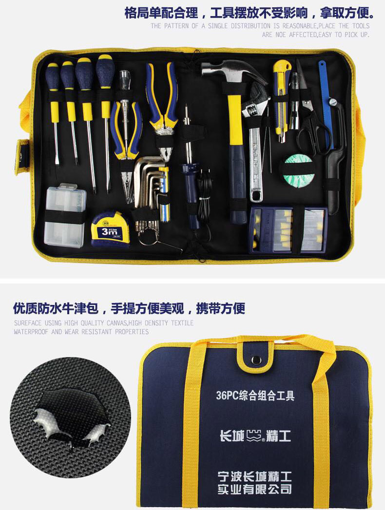首页 > 工具 工具耗材 焊接 > 工具套装 > > 长城精工工具套装,36件套(350*255*50mm),400036