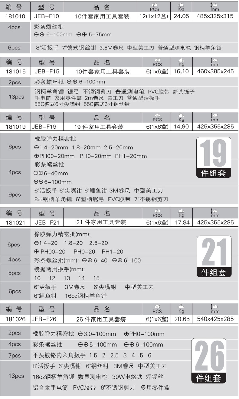 | 钳类工具 | ·1件德式钢丝钳7“ |