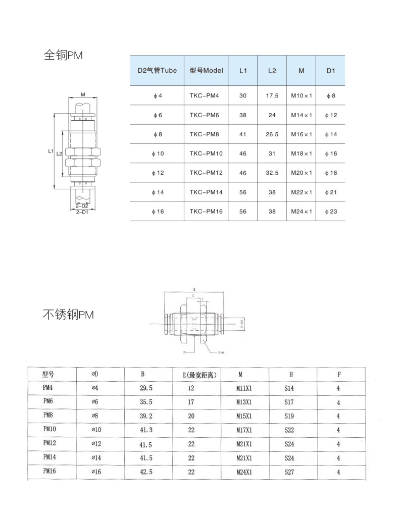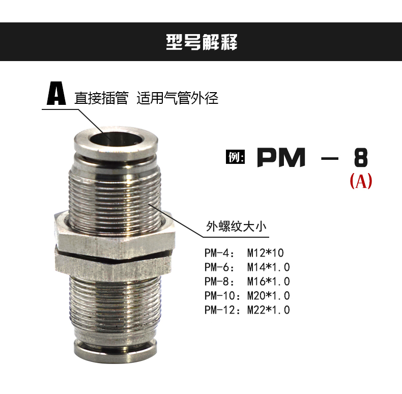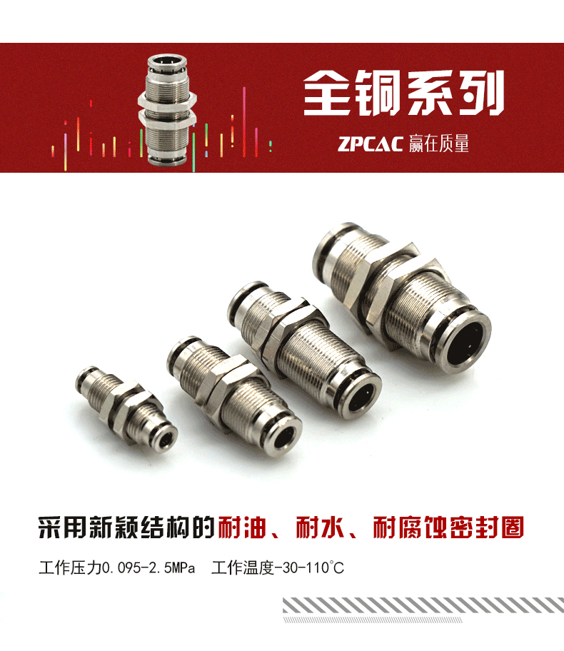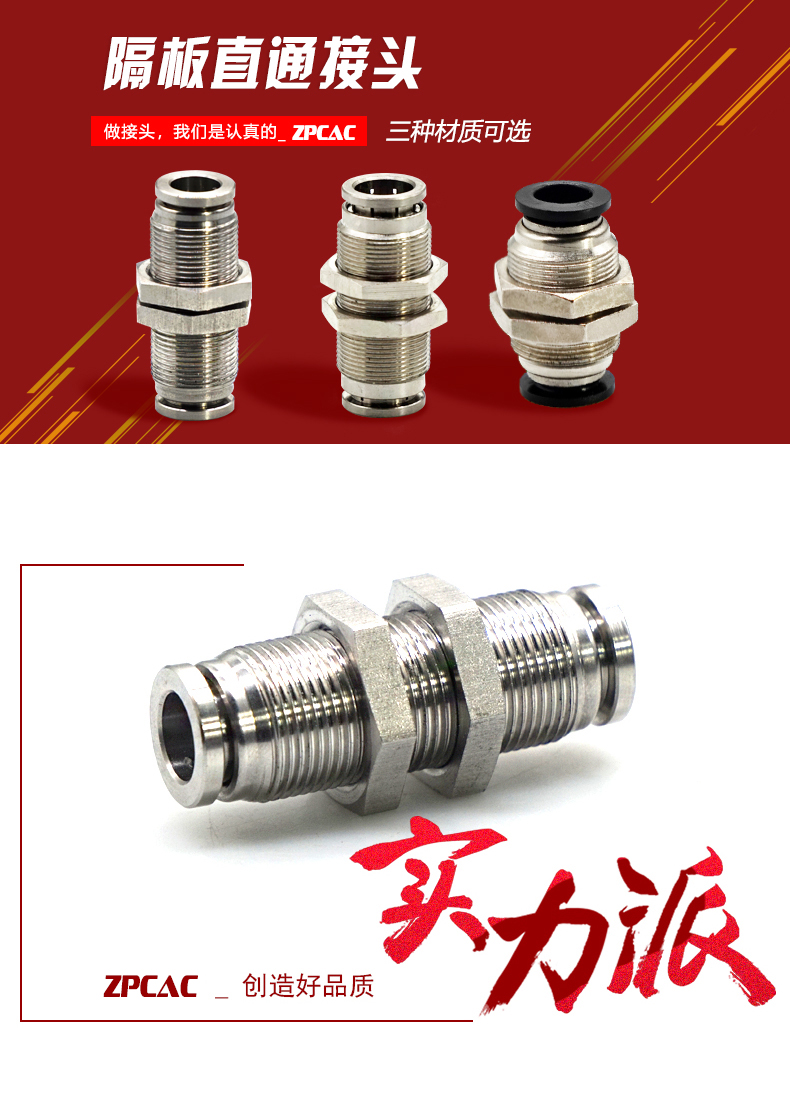 ZPCAC气动隔板直通接头,PM12(全铜)
