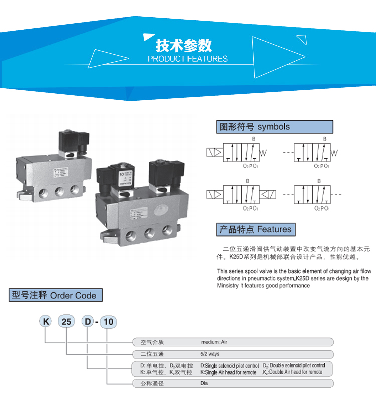 华通气动二位五通单气控滑阀,K25K-6