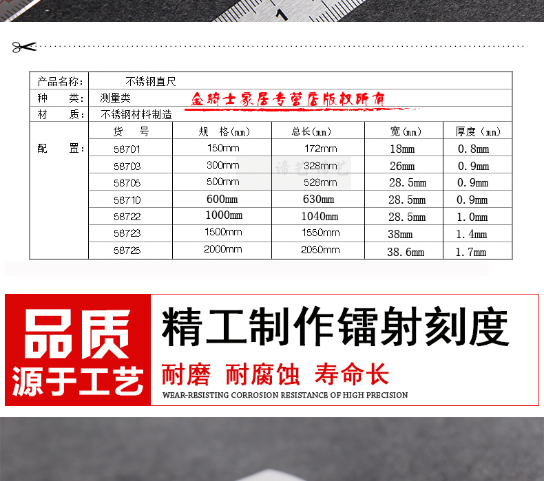 首页 > 刀具 量具 磨料 磨具 > 角尺/角度尺/刀口尺 > > 百威狮加厚不锈钢钢直尺,1000mm