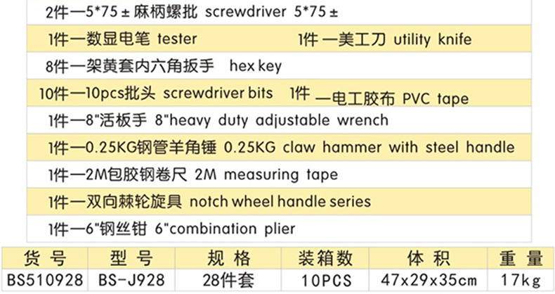 | 螺丝批 | ·2件麻柄螺批5*75 ·10件批头 |